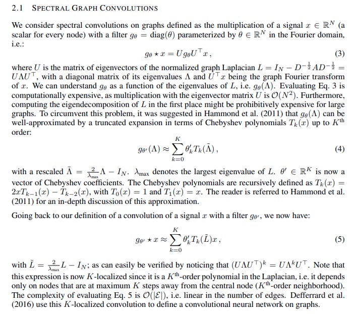 The original Graph Convolutional Network paper, on the other hand, leaves a lot to be desired — there's words and words about approximating Chebyshev polynomials and spectral graph theory that, in the end, boils down to "you can use the graph adjacency matrix to pool neighborhoods of data into a node".