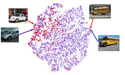 Embeddings allow us to turn concepts into points in space, where we can visualize things like ‘distance’ or ‘surfaces’. When I think about creating a model to embed cars, I imagine a fantasy map where different regions represent specific car makes and models. You have a Mercedes town, which is pretty close to BMW-burg , and kinda far from the Bus-ville. If our map does a good job keeping similar things close to each other, we’ve solved 90% of the deep learning problem.