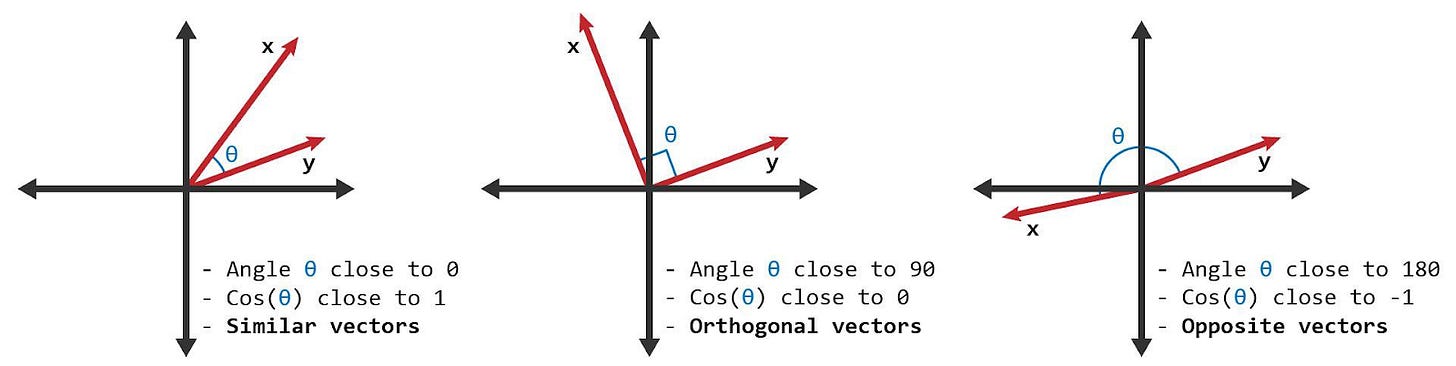 Let’s say I have two embedding vectors that both represent different concepts. I might want to calculate how similar these concepts are to each other.