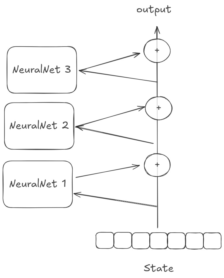 Identity residuals — commonly called a ‘residual stream’ — give a model a ‘scratch pad’ to use as state. Instead of learning how to transform a signal, each layer in a model learns a distinct ‘program’ that modifies the state. Importantly, layers don’t have to output any changes at all! A dimension in a residual stream will only change values if a layer explicitly ‘decides’ to change its value.