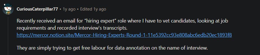 In any case, Mercor eventually pivoted fully into the data brokerage space. They now hire contractors to put together bespoke datasets for the big AI players. I don’t blame you if you feel like you’re getting de ja vu. We’ve seen this company before, it was called ScaleAI and it just got bought by Meta for a lot of money.